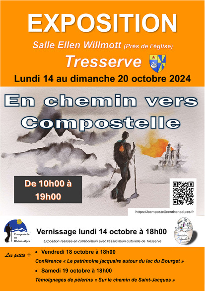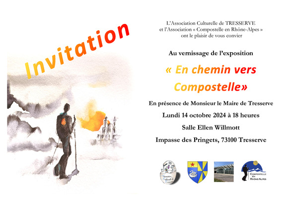 Exposition à Tresserve » EXPOSITION » EN CHEMIN VERS COMPOSTELLE « Du lundi 14 au Dimanche 20 Octobre 2024. Salle Ellen Willmott – 73100 TRESSERVE